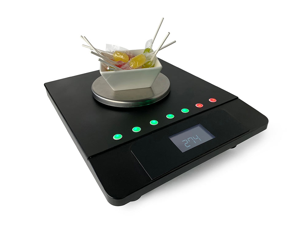 The scales are equipped with a screen, which, apart from the main function, can be used to display hints to the users during the game. The hints are controlled by game operators and can be as pre-defined as free-text.